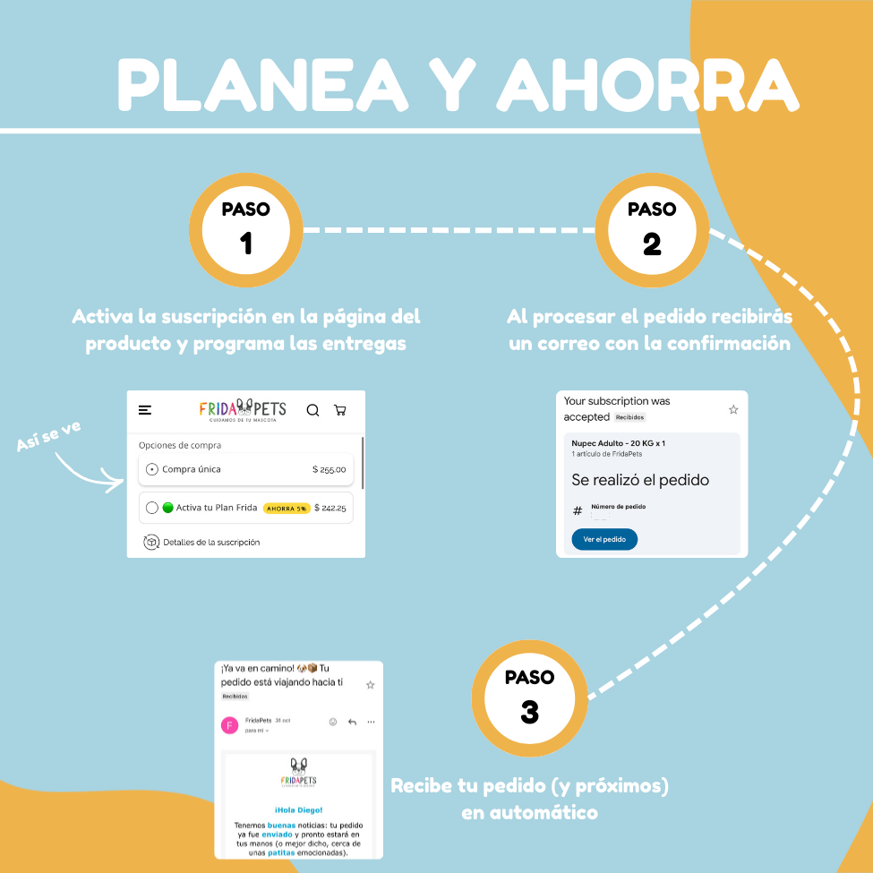 Con Planea y ahorra te aseguras de nunca quedarte sin su alimento o desparasitante.