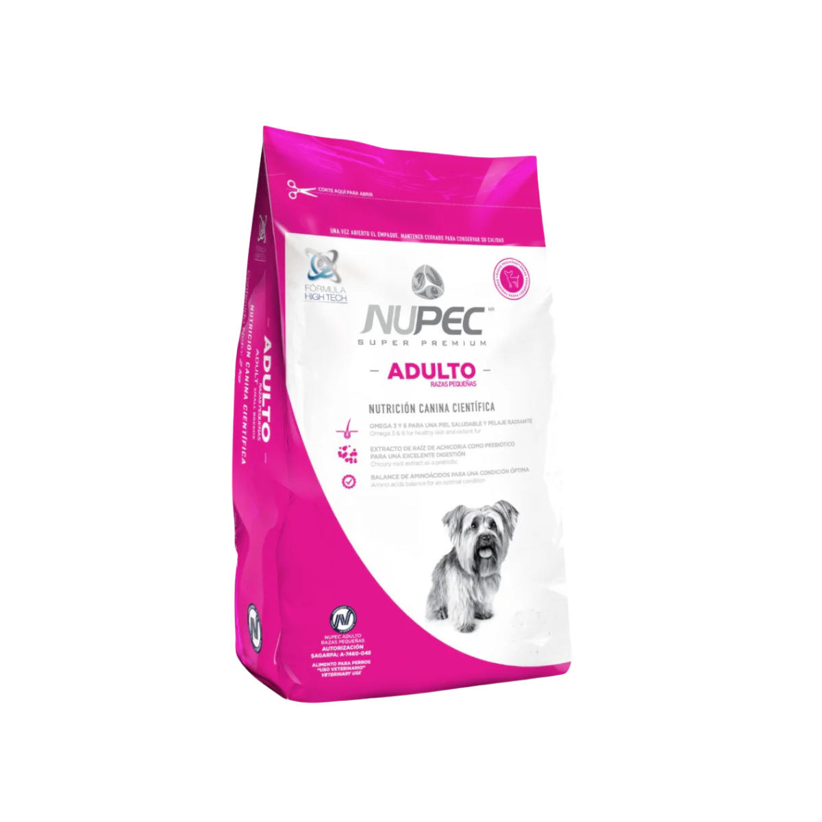Tu amigo es adulto de raza pequeña, estamos conscientes de las necesidades específicas que requiere. Sabemos que tiene dientes más pequeños, por ello Nupec adulto razas pequeñas.