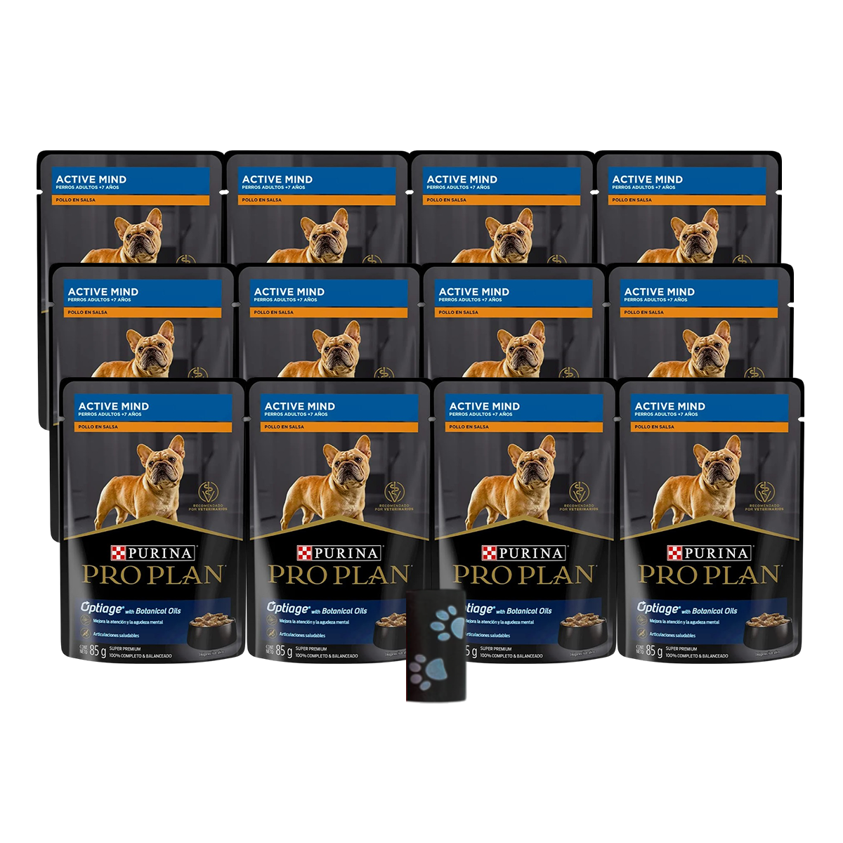 Apoya la salud y vitalidad de tu perro senior con los pouches pro plan perro adulto 7+ active mind de 85 gr. Esta fórmula ha sido desarrollada específicamente para perros mayores de 7 años, con aceite botánico rico en triglicéridos de cadena media (MCT), que ayudan a mantener la función cognitiva, la memoria y la interacción social. Encuéntralos en paquete de 12 y 24 sobres.